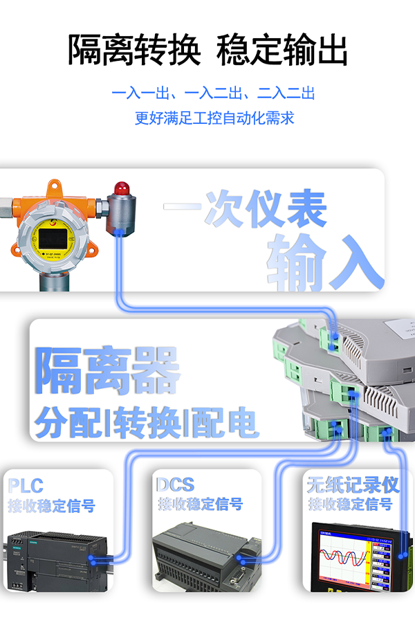 各種信號(hào)交錯(cuò)使用,肯定不利于自動(dòng)化控制,這時(shí)候信號(hào)隔離器的用途便顯現(xiàn)出來,信號(hào)隔離器通過輸入-輸出-電源之間的可靠隔離,不僅有效解決工業(yè)自動(dòng)化控制系統(tǒng)的干擾問題,同時(shí)還能將電流,電壓,電阻,電偶,頻率等信號(hào)進(jìn)行轉(zhuǎn)換和分配,更大程度上滿足自動(dòng)化控制系統(tǒng)的要求。