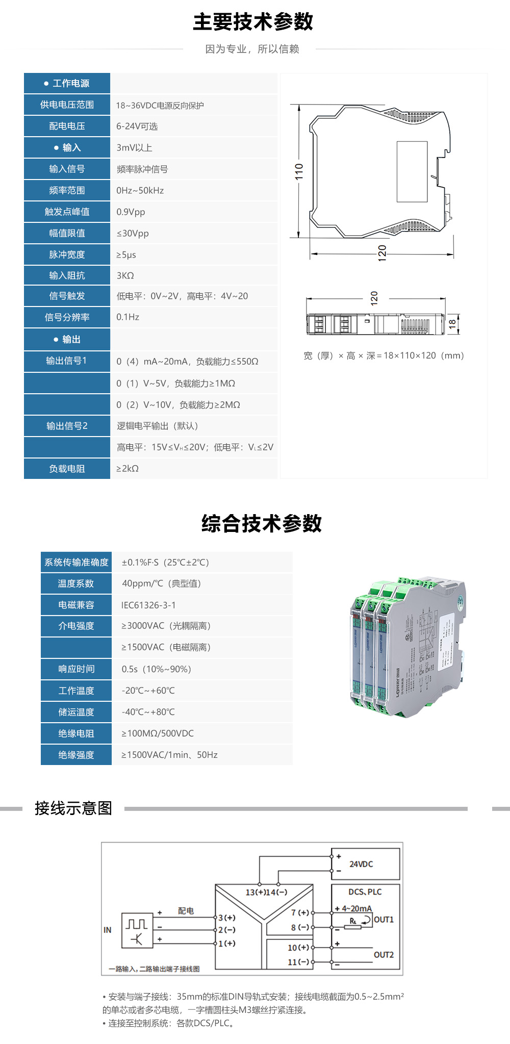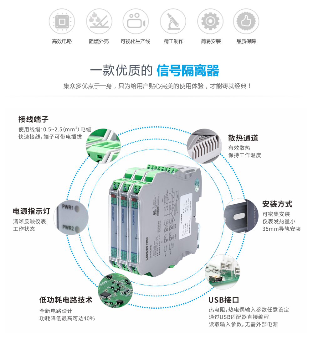 浪涌防護(hù),5KA電流泄放能?;安全可靠,保護(hù)系統(tǒng)免受雷擊,省空間,省接線。給現(xiàn)場的變送器提供隔離的直流電源,并檢測來?變送器的4~20mA電流信號,經(jīng)過隔離、?擾抑制等處理后,向控制系統(tǒng)或其它儀表輸出直流電流或電壓信號。該信號隔離器采?直流電源供電,輸?-輸出-電源三端隔離。能抑制共模、串模?擾、尖峰脈沖,使控制系統(tǒng)的信號傳輸更穩(wěn)定可靠。